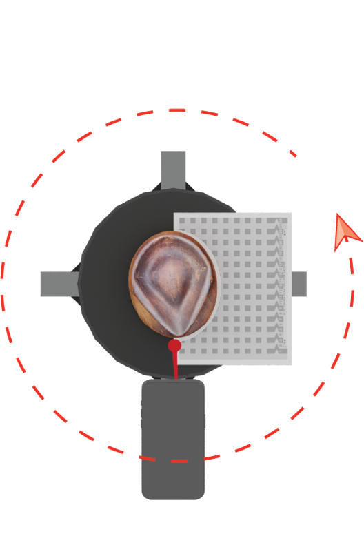 4. Once you’ve completed one orbit, gently move the phone slightly downward while keeping the hat block centred in the frame. Repeat this process 5 times.